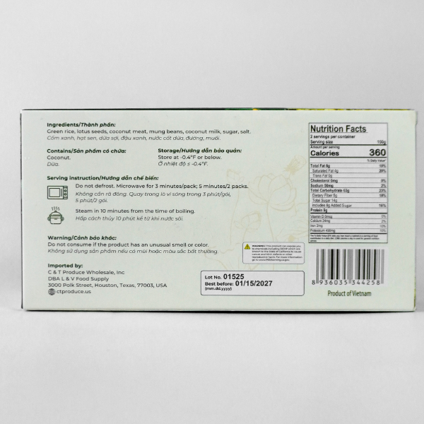 Xoi Com Hat Sen - Green sticky rice with lotus seeds 300g
